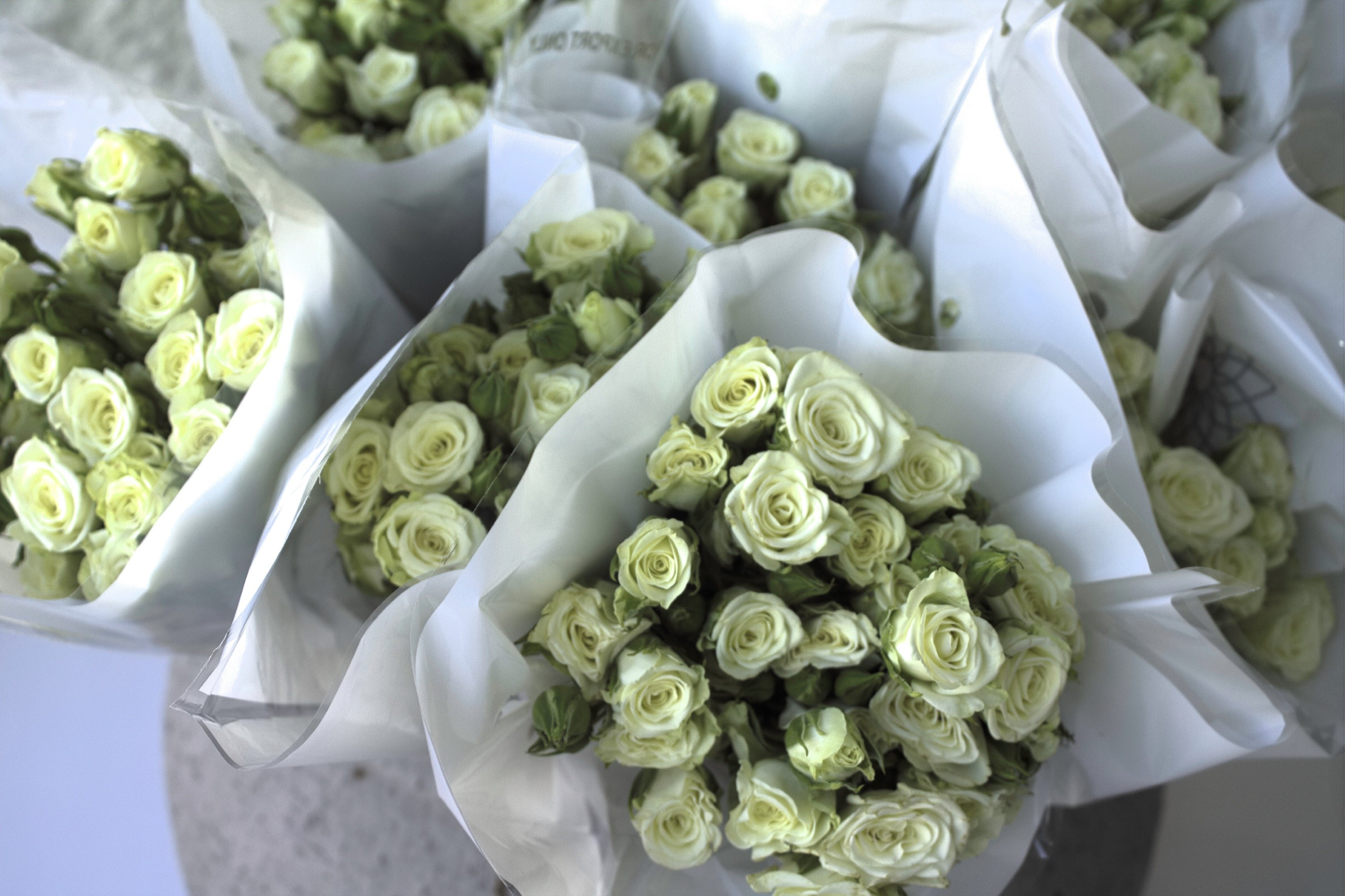 - بيبي روز أبيض: 30–50 وردة صغيرة في الربطة الواحدة (امتلاء عالي)